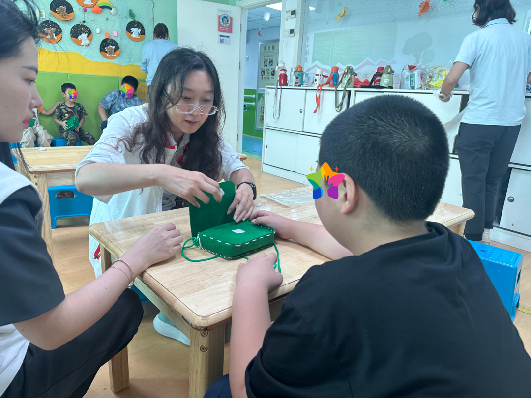 此次活动由百年人寿山东分公司5名公益志愿者组成的爱心小队执行,其中更有2名党员志愿者率先垂范,主动服务。他们来到康复中心的融合班,这里的孩子正处于康复训练与社交融合的关键时期。志愿者们深知,陪伴与互动是最好的礼物。他们轻轻走入班级,用微笑和耐心迅速拉近了与孩子们的距离,活动现场顿时充满了欢声笑语。